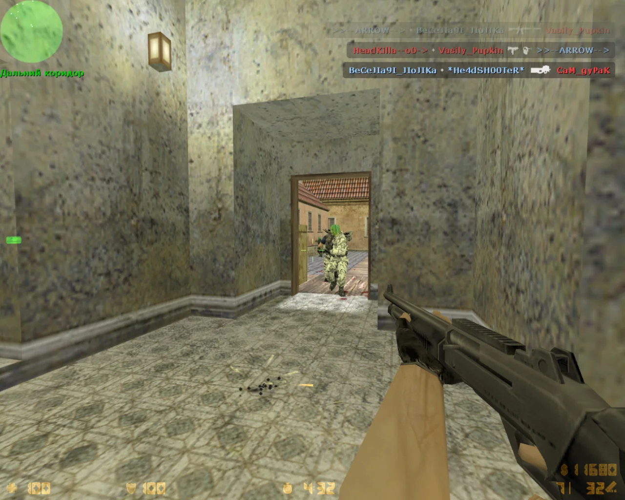 CS 1.6 Butcher - модифицированная сборка Counter-Strike 1.6, оформленная автором под тематику «Русский Мясник» с узнаваемыми визуальными элементами. В клиенте стандартный набор оружия, но внешнее оформление стволов оформлено в кровавом стиле, а традиционный нож заменён на топор мясника, который служит альтернативным оружием ближнего боя. В сборке изменены некоторые эффекты при попадании в голову модель противника может разлетаться, что визуально выделяет хедшоты. Меню клиента оформлено с новым фоном и цветовой схемой, а интерфейс полностью русифицирован. Сборка содержит оптимизированный авторский конфиг, встроенных ботов, рабочий поиск сетевых серверов, защиту от взломов и рекламы, а также поддержку русского ника и чата. Клиент нормально работает на актуальных версиях Windows и подходит для сетевой игры и одиночной с ботами, сохраняя оригинальные текстуры карт и HUD.