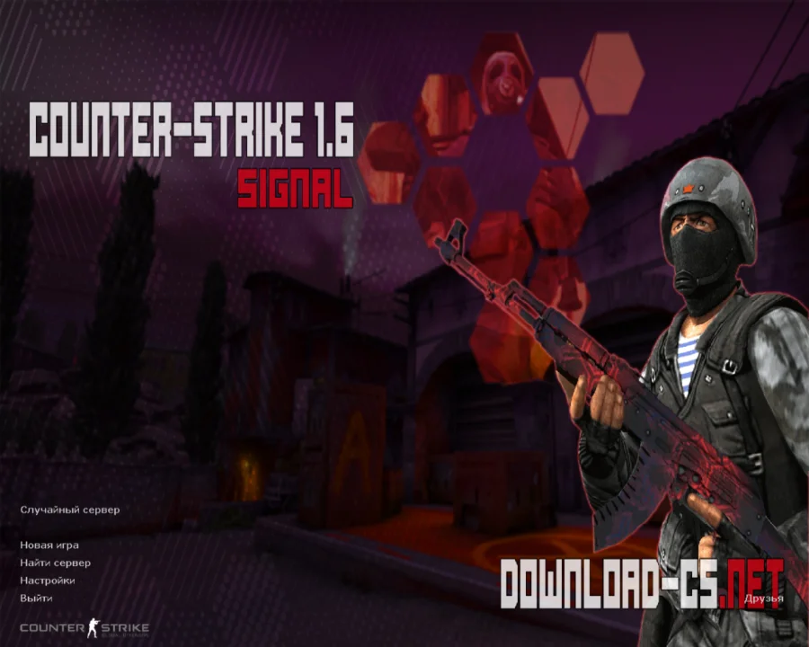 CS 1.6 Signal - кастомная сборка Counter-Strike 1.6, в которой внесены изменения визуального характера без вмешательства в базовую механику игрового процесса. В версии используются стандартные модели оружия и игроков; карты и звуки соответствуют классической CS 1.6 без HD-замен. Интерфейс клиента может включать точечные корректировки HUD (например, цветовую схему индикаторов здоровья, брони, боеприпасов) и переработанный фон главного меню, но структура интерфейса и логика отображения информации остаются стандартными. В сборке присутствует рабочий серверный браузер, встроенные боты для одиночной игры, полная русификация интерфейса и поддержка кириллицы в чате и никах. Конфигурационные файлы приведены к нейтральным значениям и не содержат пользовательских скриптов, влияющих на физику стрельбы, отдачу или сетевые параметры.